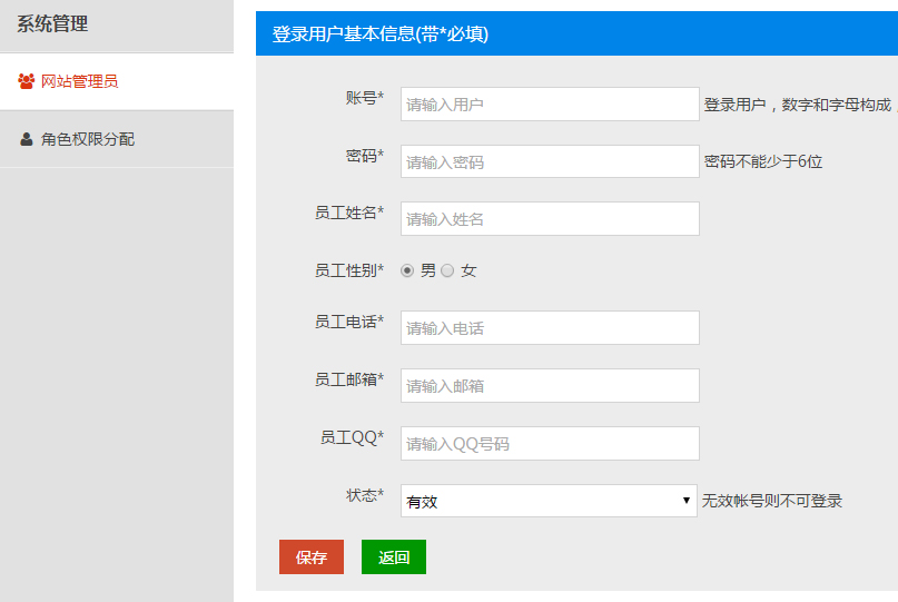 系统管理 => 网站管理员 => 网站管理员